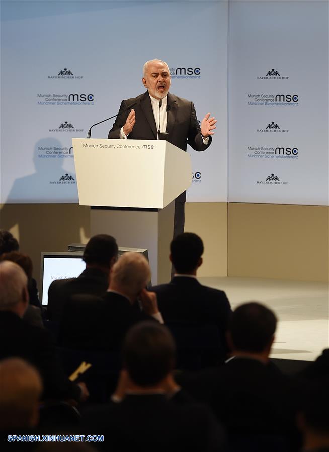 MUNICH, febrero 17, 2019 (Xinhua) -- El ministro de Asuntos Exteriores iraní, Mohammad Javad Zarif, pronuncia un discurso durante la 55 Conferencia de Seguridad de Múnich (CSM), en Múnich, Alemania, el 17 de febrero de 2019. Mohammad Javad Zarif instó el domingo a las potencias europeas a hacer más para salvar el acuerdo nuclear con la república islámica y acusó a Washington de tener "una obsesión" con Irán. (Xinhua/Lu Yang)