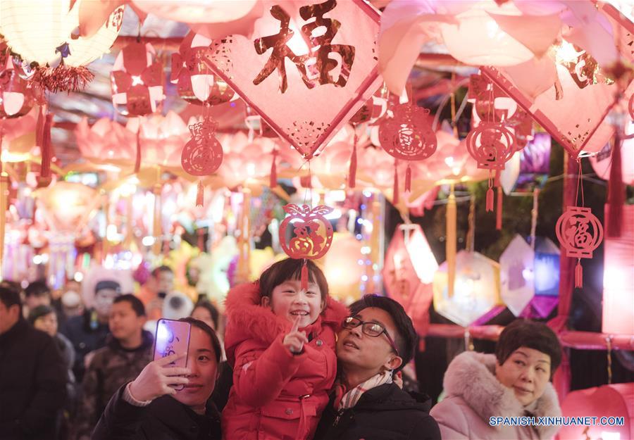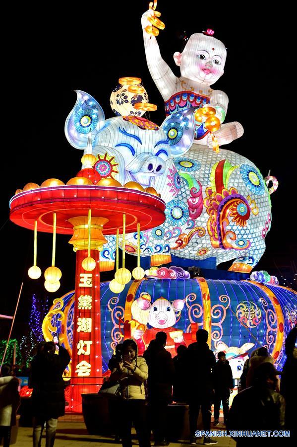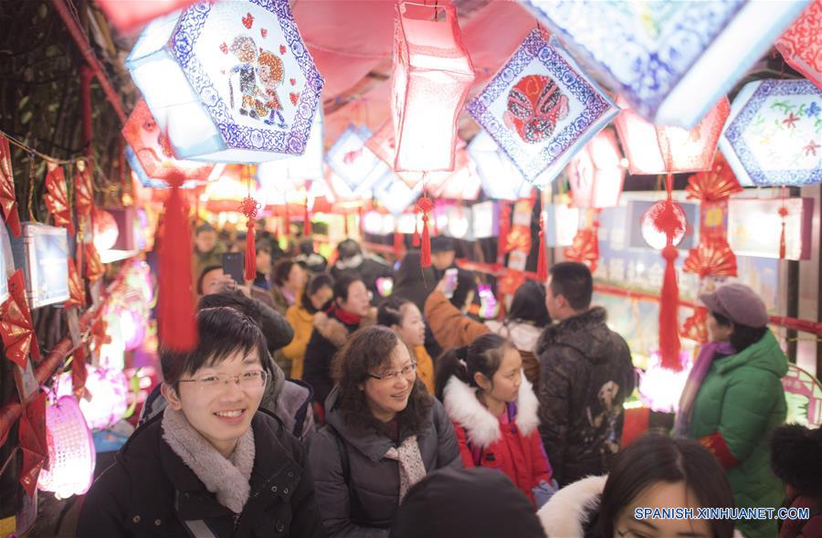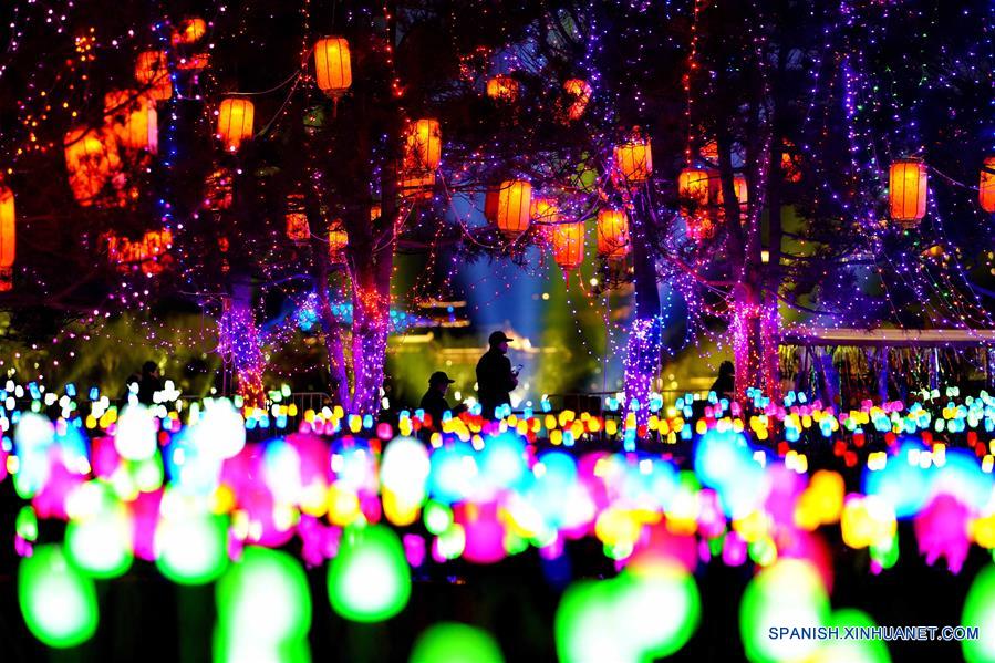 HEBEI, febrero 18, 2019 (Xinhua) -- Imagen del 17 de febrero de 2019 de personas recorriendo una Feria de Faroles en el Parque Nanhu, llevada a cabo para celebrar el próximo Festival de los Faroles, que se conmemora el 19 de febrero de este a?o, en la ciudad de Tangshan, en la provincia de Hebei, en el norte de China. (Xinhua/Yang Shiyao)