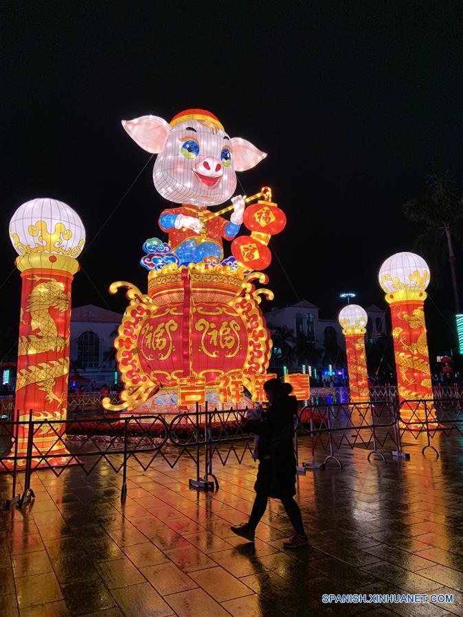 GUANGDONG, febrero 18, 2019 (Xinhua) -- Una mujer camina frente a linternas mostradas en una plaza cultural en el condado de Dqing, en la provincia de Guangdong, en el sur de China, el 18 de febrero de 2019. Muchos lugares en el país han sido decorados con linternas para celebrar el próximo Festival de los Faroles, que se conmemora el 19 de febrero de este a?o. (Xinhua/Zhuang Jin)