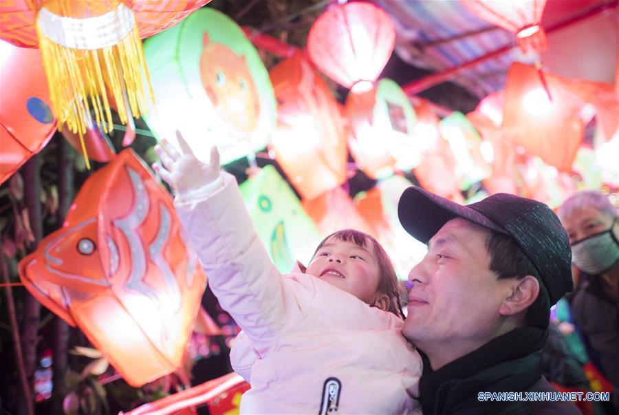 HUBEI, febrero 18, 2019 (Xinhua) -- Personas observan linternas en la galería cultural de la Comunidad de Baibuting, en Wuhan, capital de la provincia de Hubei, en el centro de China, el 18 de febrero de 2019. Muchos lugares en el país han sido decorados con linternas para celebrar el próximo Festival de los Faroles, que se conmemora el 19 de febrero de este a?o. (Xinhua/Xiao Yijiu)