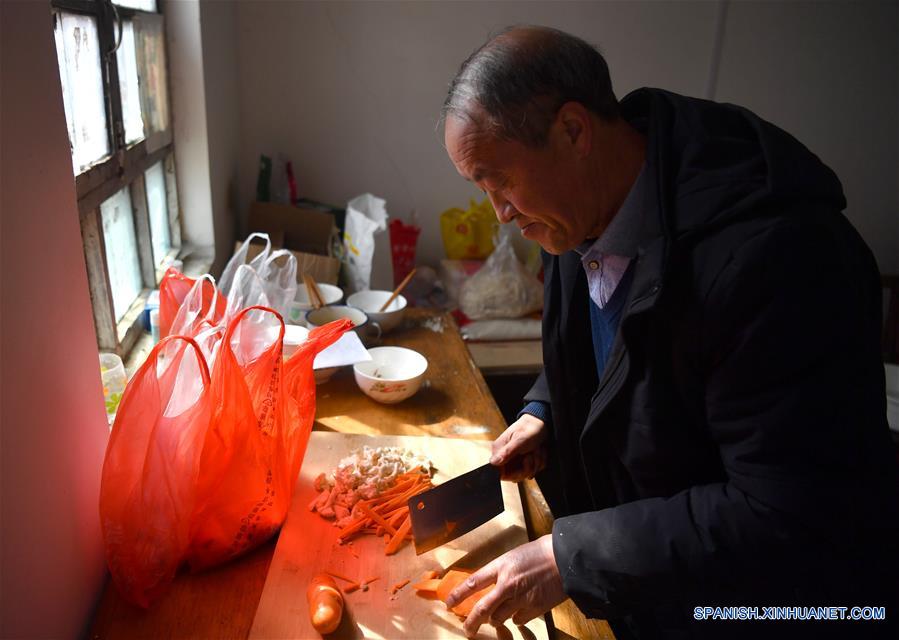 Imagen del 28 de febrero de 2019 del profesor Kong Wenqing preparando comida para sus alumnos en la villa Huashan, en el condado de Yiyang, en la provincia de Henan, en el centro de China. En a?os recientes, mientras los residentes se han mudado gradualmente fuera del área monta?osa, solo quedan un profesor y tres estudiantes en la villa Huashan para el nuevo semestre de 2019. Kong Wenqing, quien se ha comprometido con la carrera de la ense?anza por 36 a?os, esta a cargo de casi todos los asuntos incluyendo administración, contabilidad, cocina y limpieza de la escuela. El profesor abandonó la oportunidad de ser director en otra escuela en el a?o 2006 y escogió continuar ense?ando en la villa Huashan porque cree que los estudiantes aquí lo necesitan más. A pesar de sólo queda un peque?o número de estudiantes, Kong Wenqing no escatima en esfuerzos para darles tutoría. Ha alcanzado la edad de retiro, pero pretende ser recontratado y continuar ense?ando mientras aún haya ni?os en edad escolar. (Xinhua/Li Jianan)