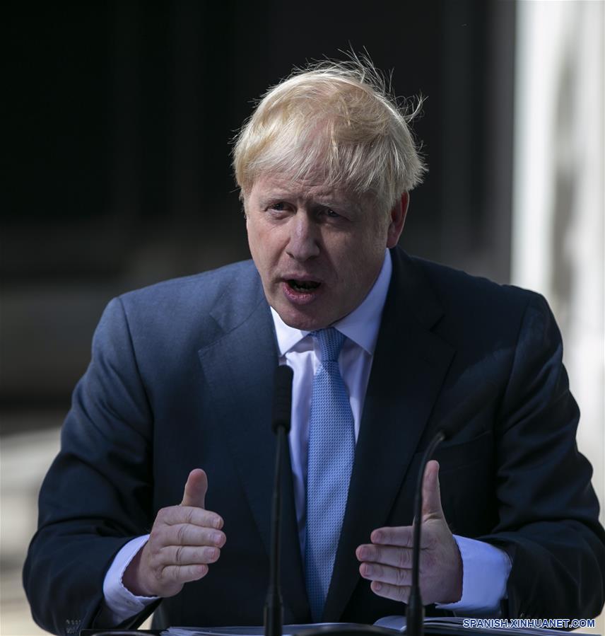 El recién elegido líder del Partido Conservador y primer ministro de Reino Unido, Boris Johnson, habla en el número 10 de la calle Downing, en Londres, Reino Unido. El recién elegido líder del Partido Conservador británico, Boris Johnson, asumió el miércoles el cargo de primer ministro de Reino Unido en medio de las crecientes incertidumbres sobre el "brexit". El relevo ocurre luego de que Theresa May renunció formalmente como primera ministra del país y Johnson fue invitado por la reina británica Isabel para formar el gobierno. (Xinhua/Han Yan)